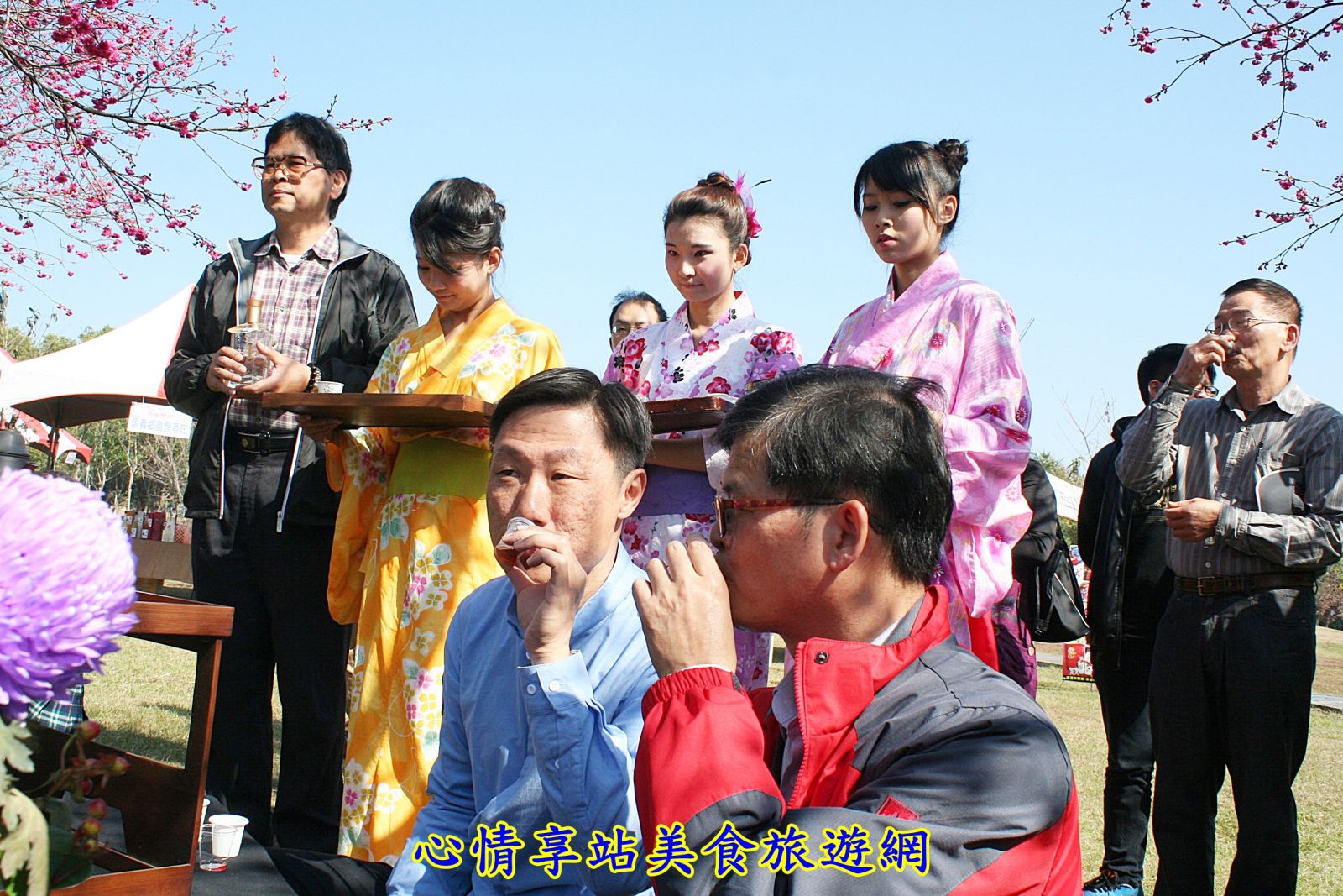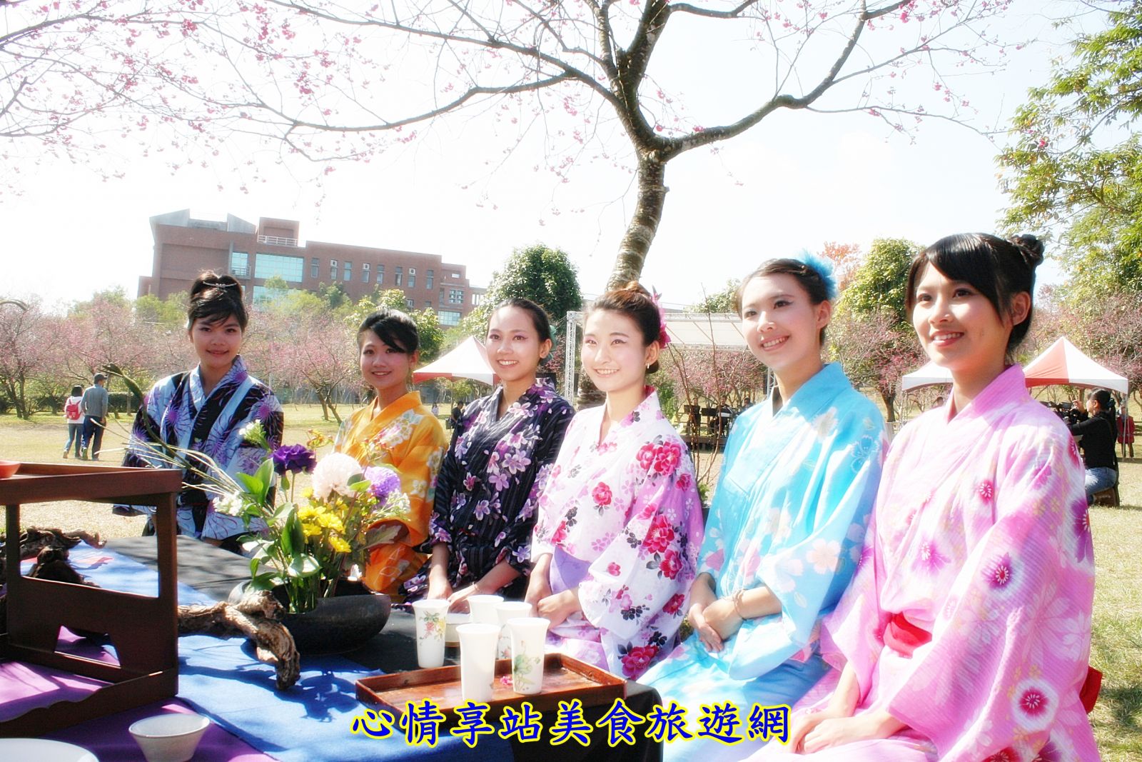 在處處嫣紅綺麗美姿與翠綠草原輝映的暨大櫻花林,展開一場賞櫻茶道體驗的活動,