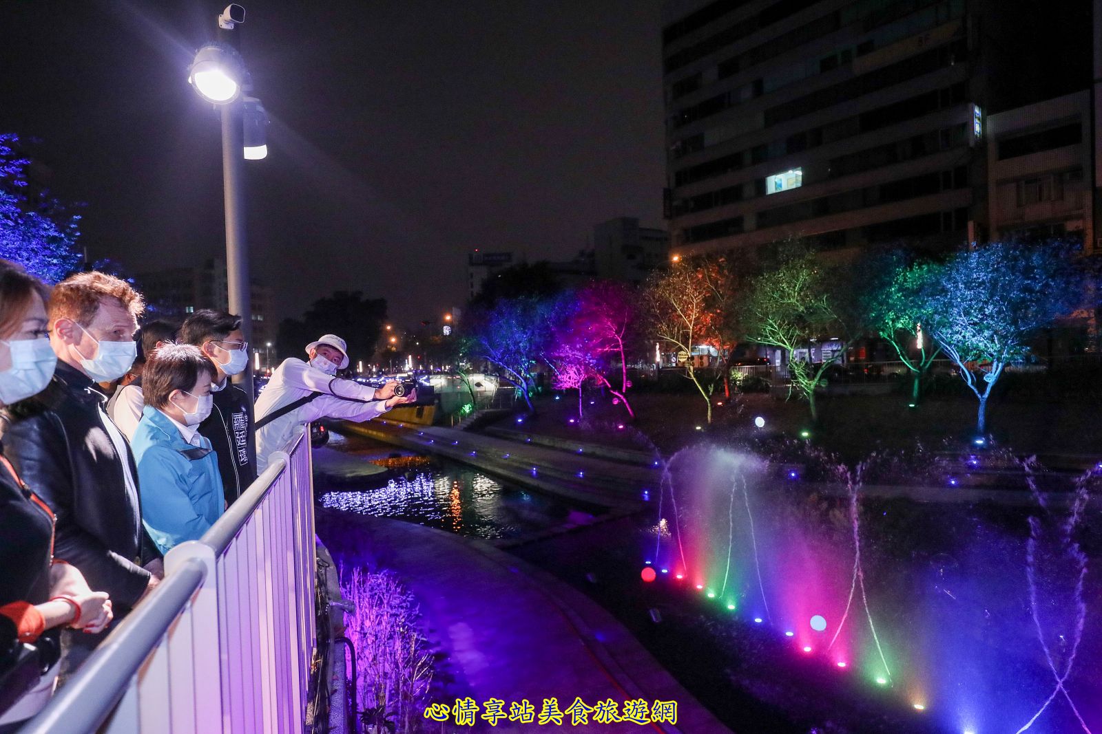 盧市長今晚前往柳川舉行試點燈儀式,除了欣賞精彩的水舞燈光表演,