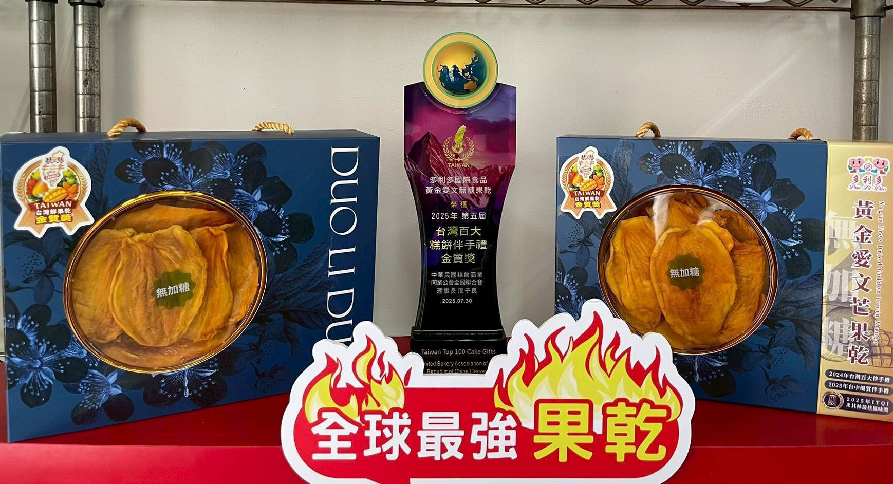 伴手禮是地方上的榮耀,台灣的驕傲,更能登上國際舞台,台灣伴手禮再添榮耀!以芒果乾打出市場知名度的多利多國際食品有限公司,於114年榮獲「2025台灣百大糕餅伴手禮金質獎」,不僅展現台灣農產加工的獨特實力,更象徵台灣在地農特產品躍升國際舞台的重要里程碑。