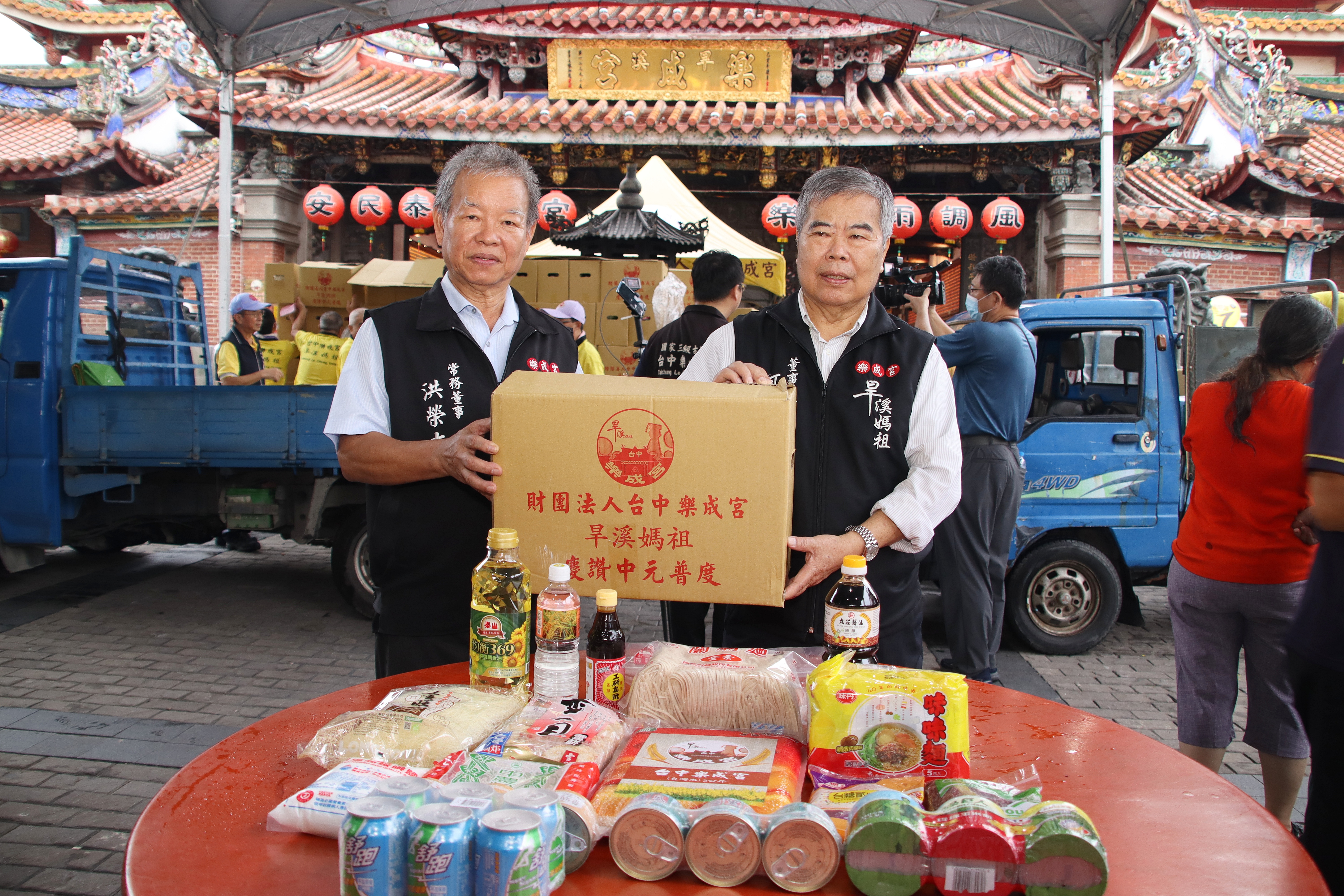 董事長何敏誠說,今年度樂成宮祈安慶讚中元三天法會信眾參加超拔項目有冤親債主8,056位、動物靈811位、嬰靈2,320位、歷代祖先4,580位、地基主2,018位、參與普度盛會亦有6,120桌,愛心白米5萬7千多斤,近4,000桌善信物資捐出做公益。用來擴大幫助有辦理長照單位及鄰里關懷據點,希望藉由樂成宮這次捐贈儀式能夠拋磚引玉,對社會公益表達關切與重視,讓社會各界的愛心持續挹注,鼓勵大眾可以攜手送暖,挹注愛心,使每個弱勢家庭或社福機構都能感受社會溫情,讓中元普渡更具意義。