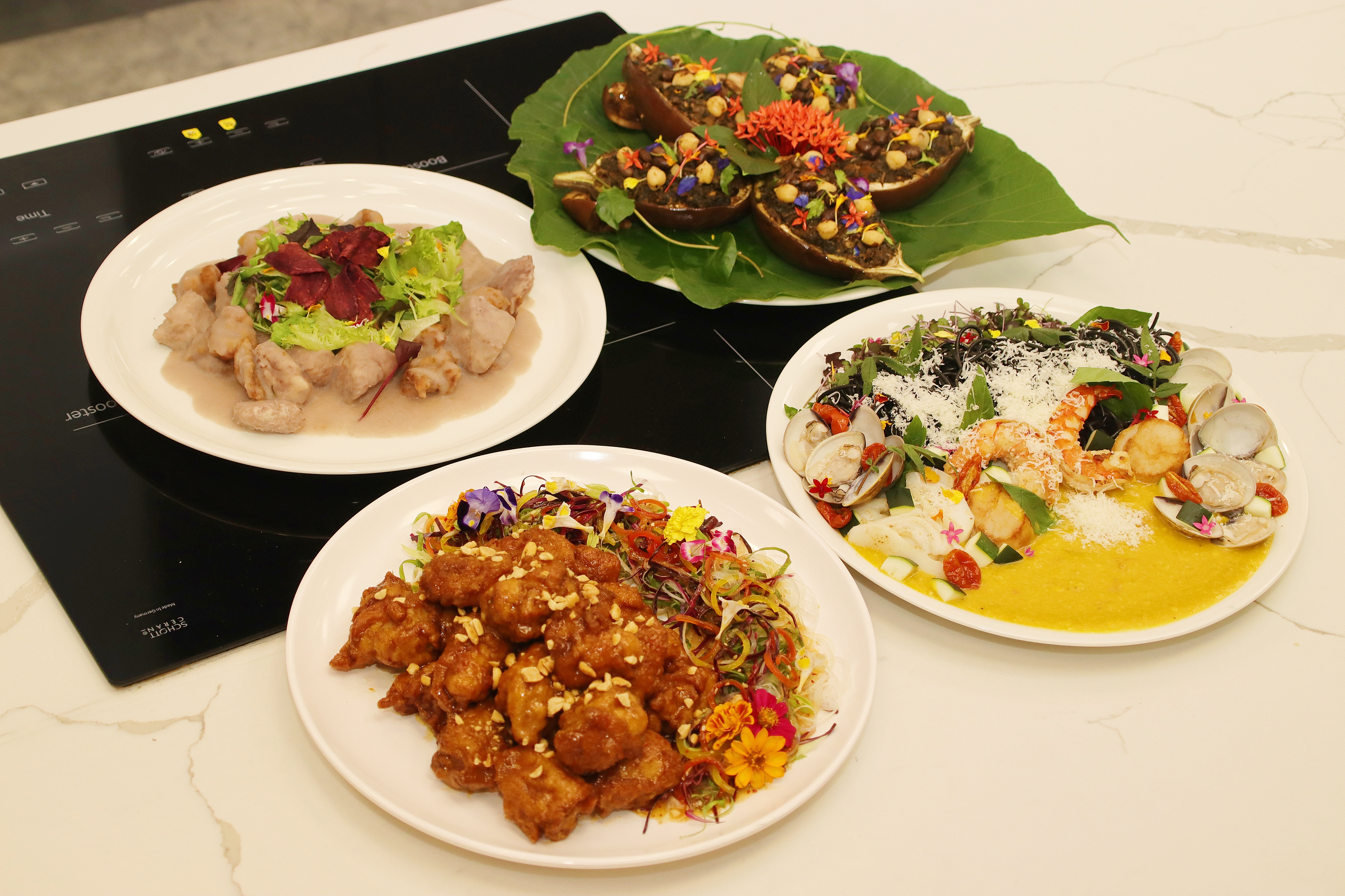 活動一開始,來自米其林指南連續五年入選餐廳膳馨餐飲集團創辦人—— 鄭乃綱主廚率先示範,運用苗栗特色食材如芋頭、梅乾菜、南瓜、金桔醬等,將地方風味化為高端餐桌上的創意佳餚,現場驚呼連連。台中市農業局也帶來代表性的「地酒」,與苗栗食材激盪出跨界新滋味。隨後三位名廚屋馬餐飲集團金韓食——劉俊德主廚、媚登峰集團大米義式廚房——張文豪主廚、寧菠風味小館——鄧玲如主廚也接力,讓客家風味一秒升級為時尚餐飲,傳統與現代的碰撞成為全場焦點。