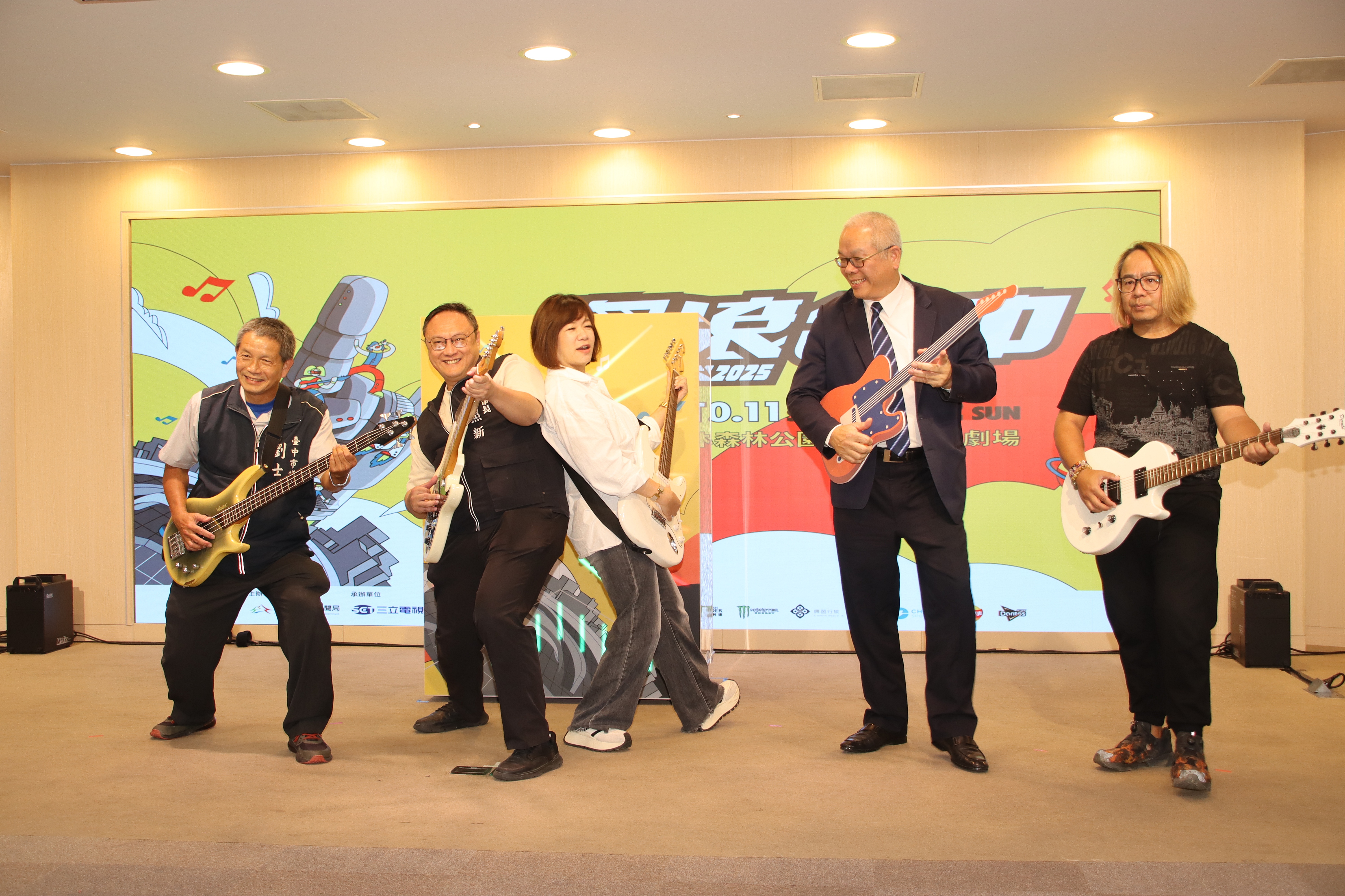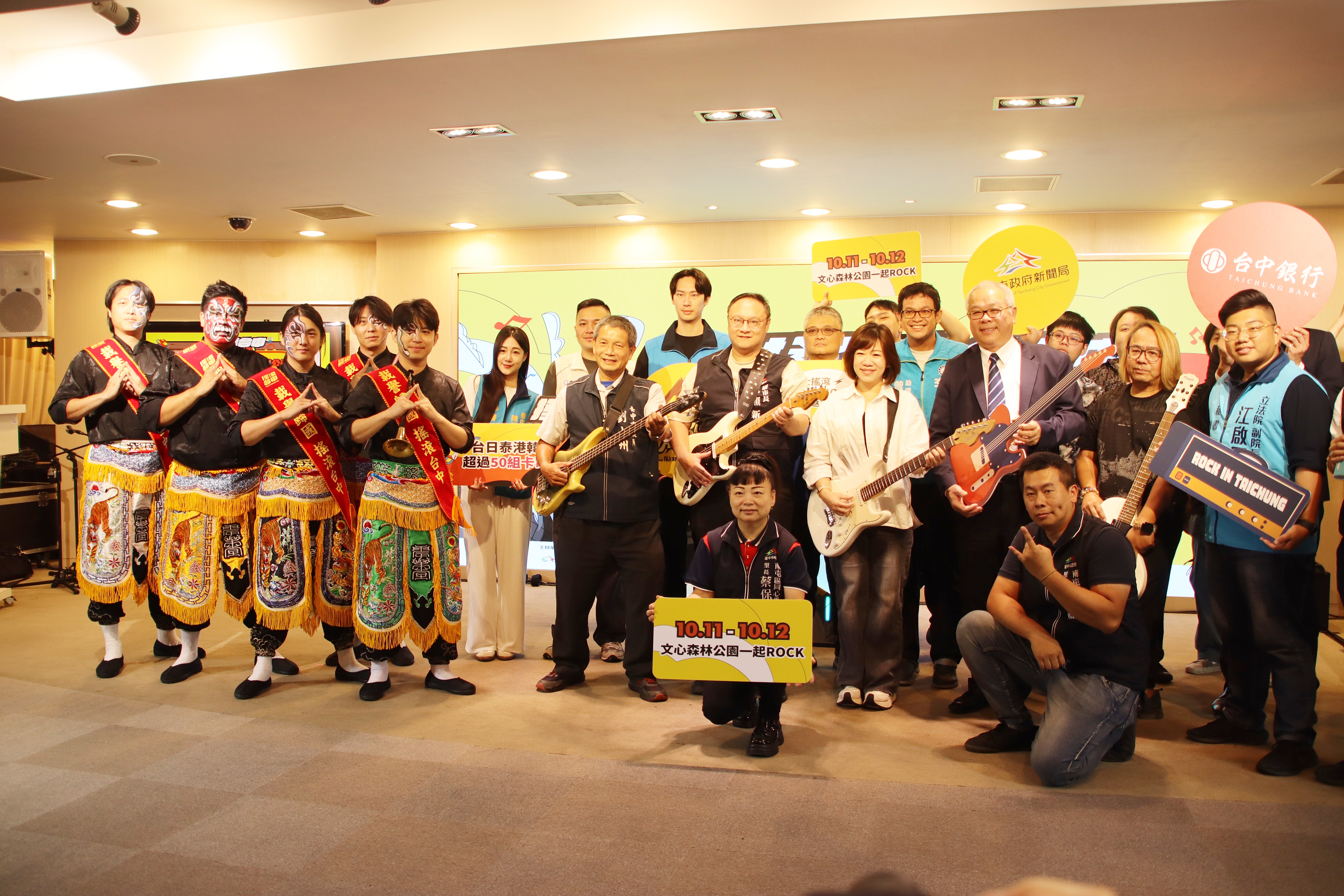 全台最具指標性的搖滾音樂盛事「2025搖滾台中」將在國慶連假10月11、12日登場,在文心森林公園圓滿戶外劇場火力全開!今年活動神仙陣容一次齊聚,包含金曲歌王 HUSH、大勢樂團美秀集團、高人氣樂團老王樂隊,及新銳人氣樂團溫室雜草、溫蒂漫步等,兩天連續轟炸樂迷感官,呈現台中最澎湃多元的搖滾能量。台中市政府新聞局今(3)日舉辦記者會,由副市長鄭照新、新聞局長欒治誼,攜手台語宮廟搖滾樂團「震樂堂」一起引爆搖滾盛事!