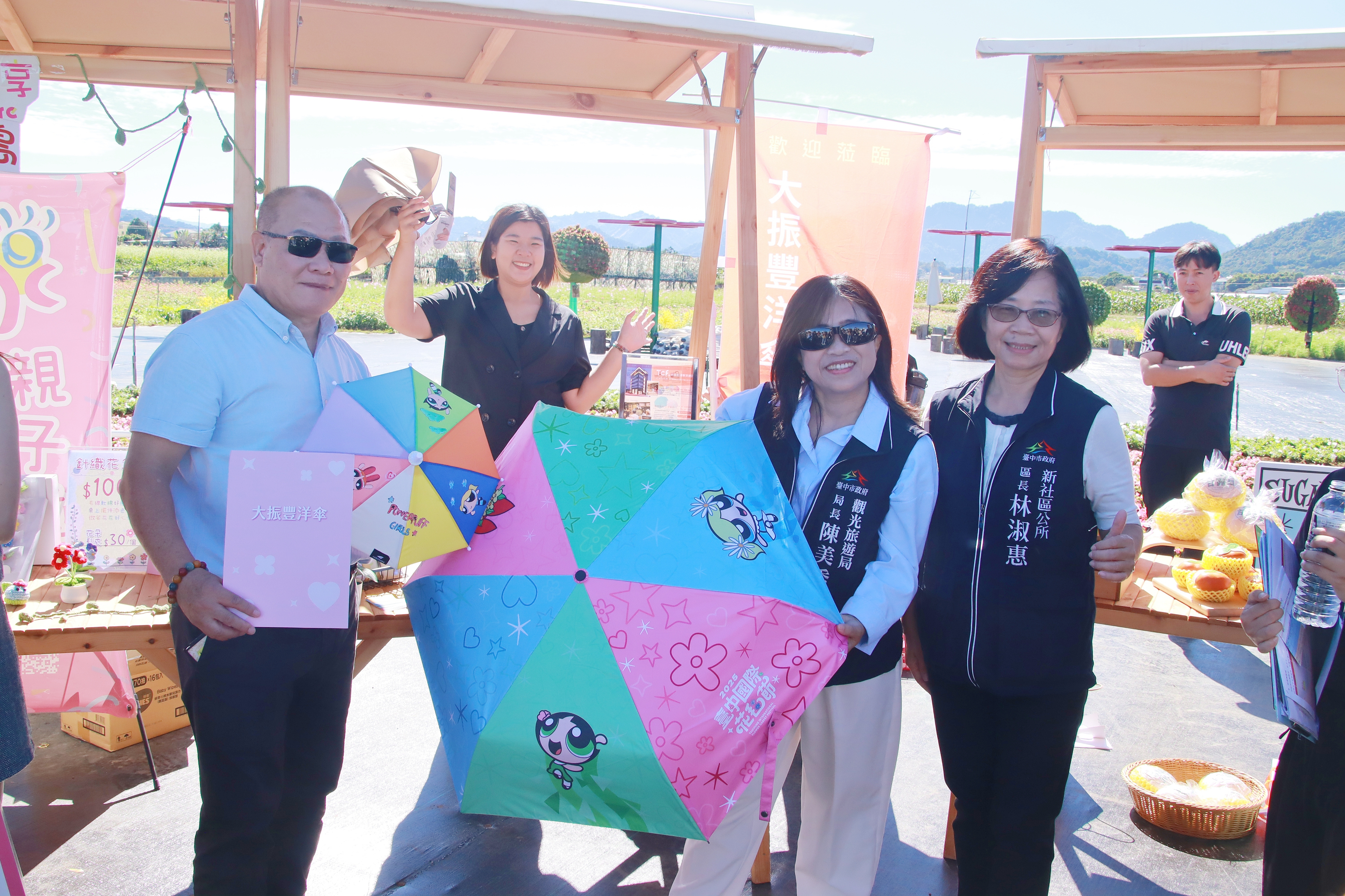 今日活動貴賓雲集,副秘書長張大春、立法院江啟臣副院長、農業部種苗改良繁殖場副場長劉明宗、市議員吳振嘉、沈佑蓮、張瀞分、觀旅局長陳美秀、文化局長陳佳君、中華郵政臺中郵局葉玉暇局長等蒞臨現場,立委廖偉翔、蔡其昌、議員黃馨慧、邱愛珊、蔡成圭、古秀英、農業部農村發展及水土保持署台中分署、區公所及新社區在地里長、觀光公協會代表等單位皆派員共襄盛舉。