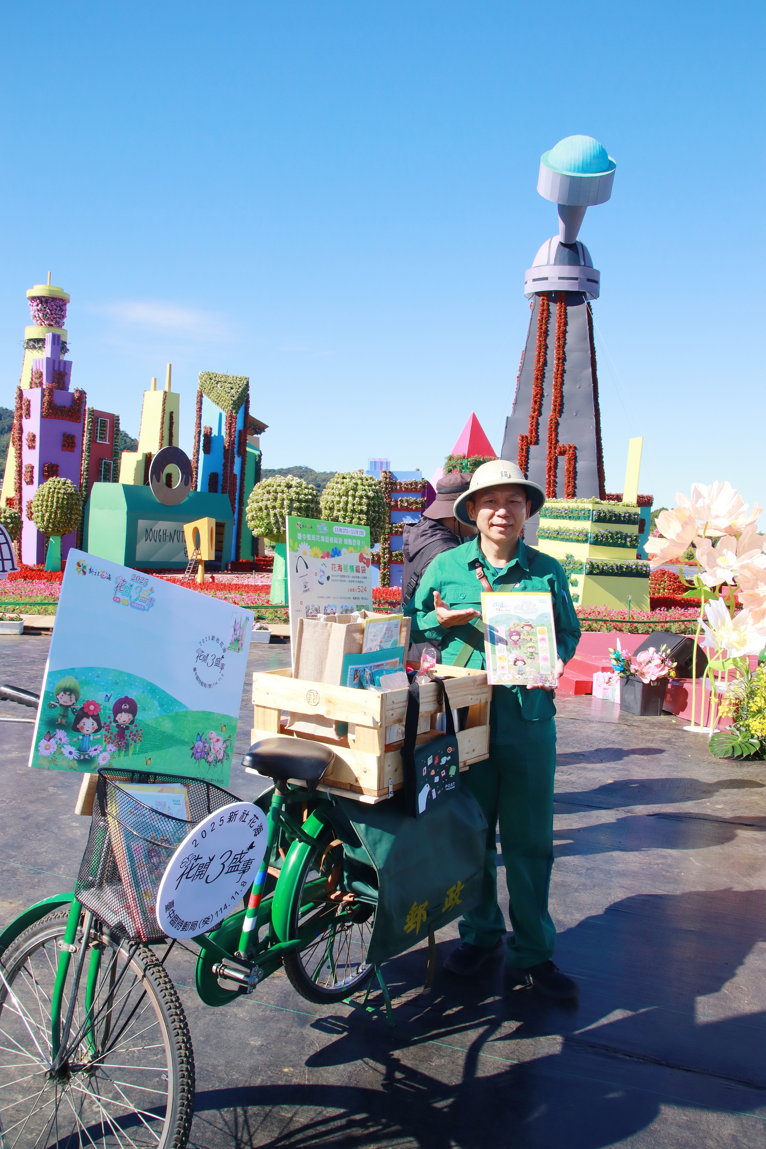 臺中郵局表示,將於11月8日至9日在活動現場設置服務攤位,提供多款集郵票(商)品展售服務,讓民眾在繽紛花海中體驗郵政文化之美,並於開幕日(11/8)特別開辦臨時郵局,提供限量1,000封紀念封供民眾免費索取。活動期間,臺中郵局特別發行「波波鴿花海主題」個人化郵票(共4款:波波鴿遊花海、波波鴿花毯夢、波波鴿種植趣及波波鴿顧目啾,每張售價124元),並同步推出限量500份的「花海同樂福袋」,每份特價800元,內容包含SNOOPY同樂旅行袋、幸福郵你矽膠餐墊、郵愛地球餐具組、波波鴿個人化郵票及心花樣瓷杯等5項精選商品,十分超值,歡迎民眾於花海現場郵局服務區或至臺中地區各地郵局窗口選購。