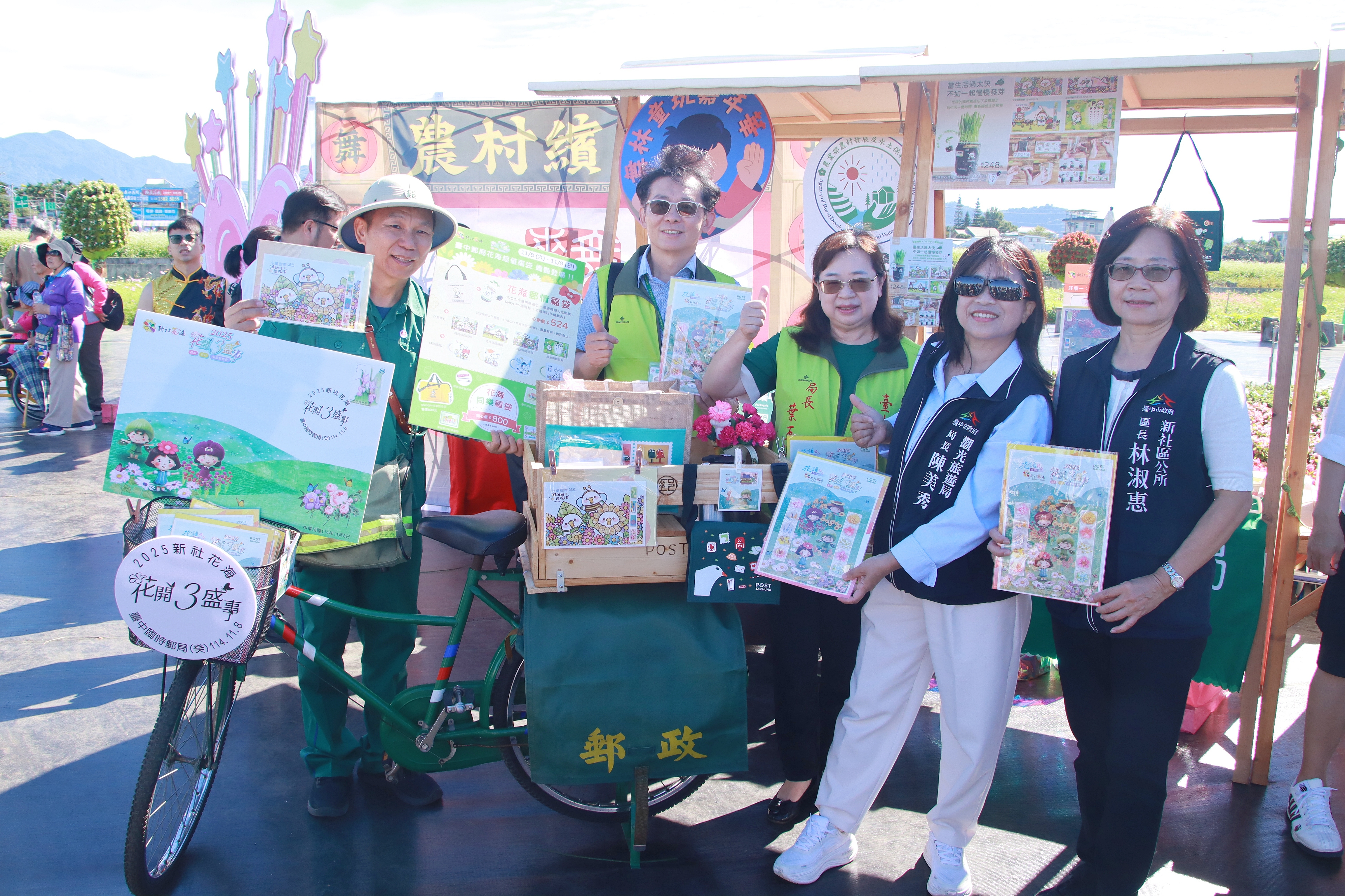臺中郵局葉玉瑕局長表示,新社花海節是臺中郵局長年深耕地方、展現郵政服務的重要活動。繽紛花海讓民眾徜徉自然之美,也能帶回紀念價值的特色郵品。郵政是民眾的好鄰居,秉持服務熱忱不間斷,感謝主辦單位農業部種苗改良繁殖場及臺中市政府觀光旅遊局支持,讓臺中郵局為城市行銷再添亮點,共同綻放郵政與花海的美麗風華。