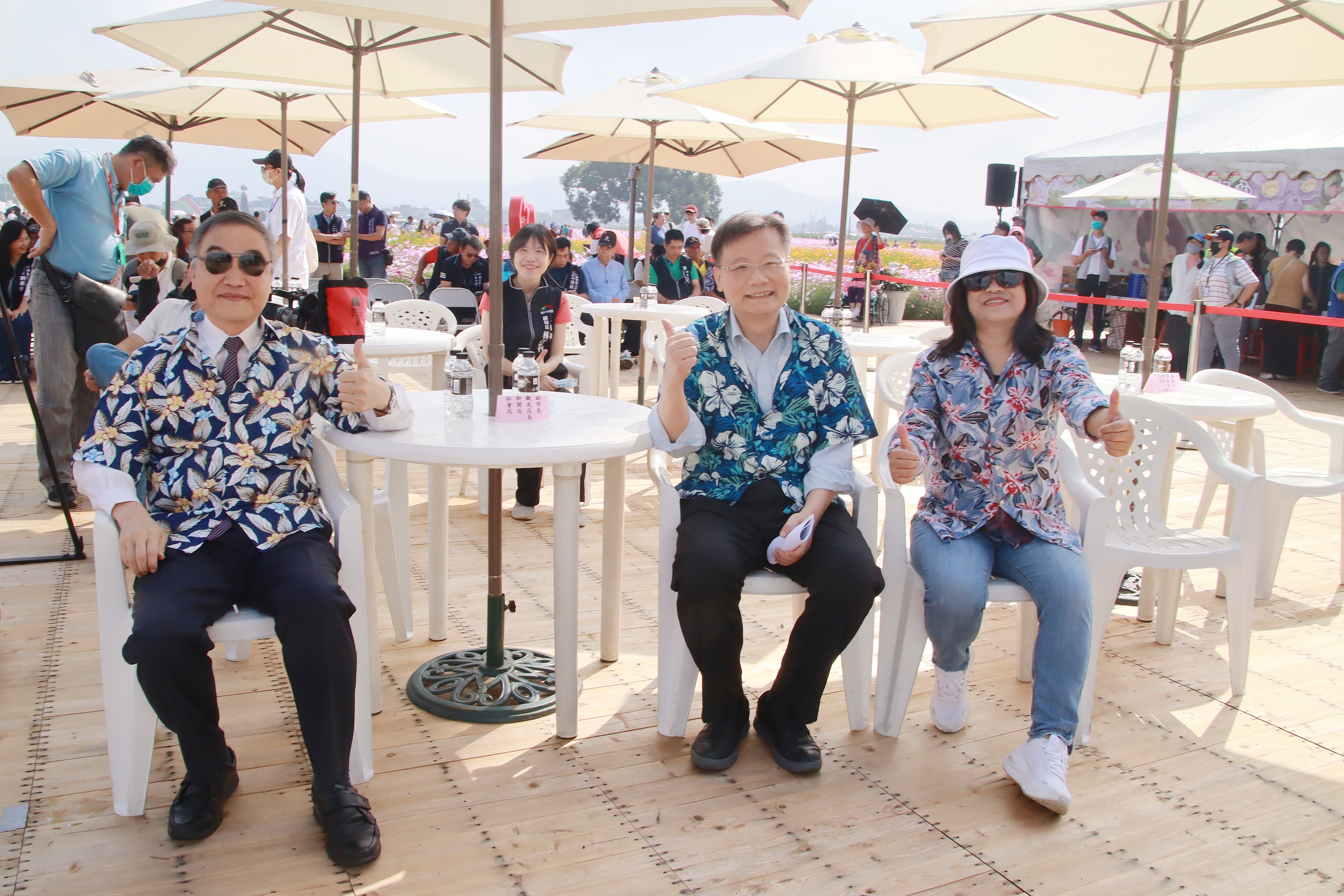 農業部積極推動六級產業,胡次長特別感謝臺中市政府團隊多年來與農業部種苗改良繁殖場合作,打造新社花海這個國際盛事,並強調今年玫瑰主題展展示50種玫瑰,呈現種苗場在品種研發及品種權保護上投入的用心與實力。胡次長也邀請來自國內外的遊客前往青農特展區及山城產業推廣區消費,用行動支持山城優良的農產、體驗山城區的深度旅遊。