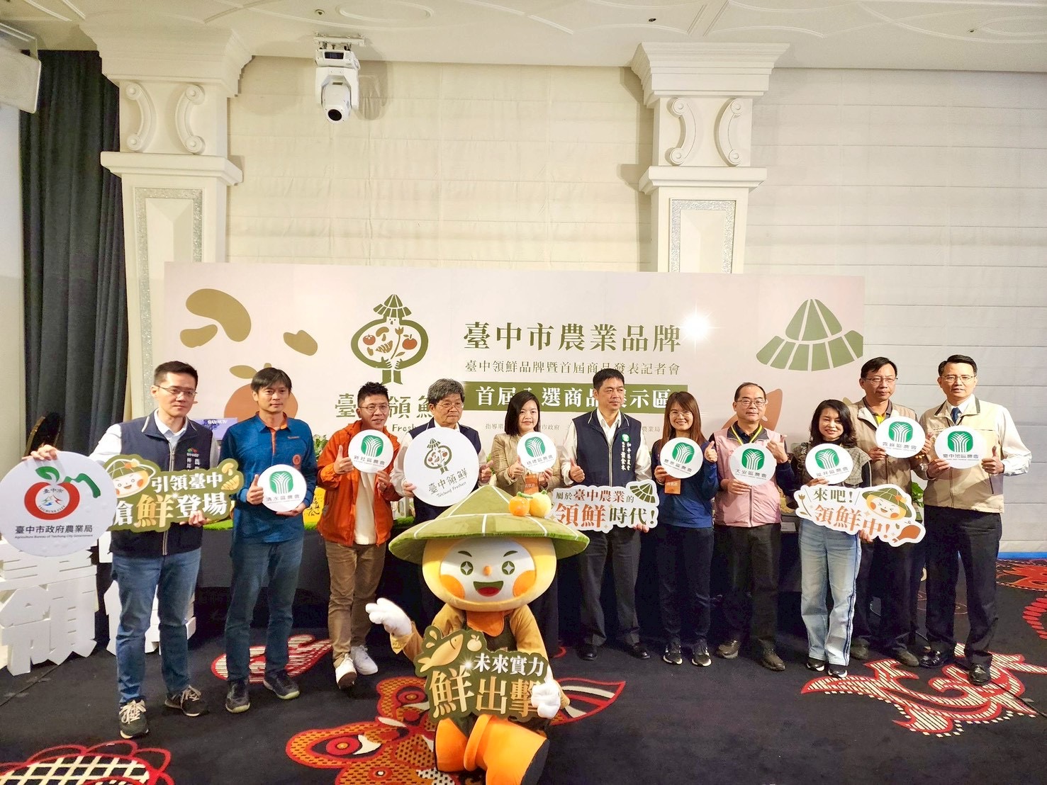 台中市政府農業局今(18)日上午舉辦「台中領鮮」品牌暨首屆產品發表記者會,邀集各農會、入選品牌業者、區公所等,共同見證「台中領鮮」首屆品牌制度啟動及農產品遴選成果。此次活動特別規劃品牌IP人偶裝開場演出,以及入選優良農產品展區,展現台中農業品牌化的嶄新能量。
