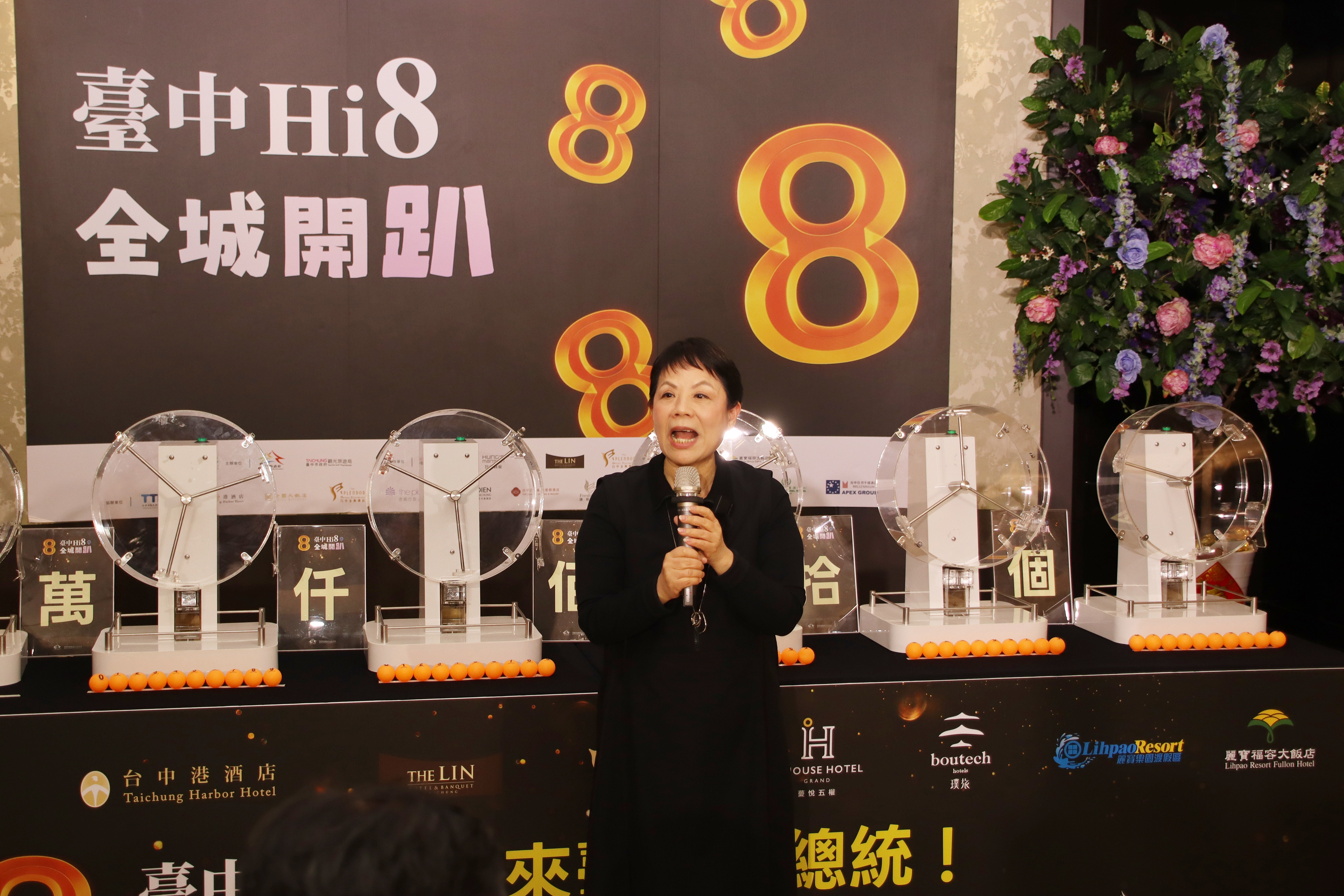 陳局長也說,此次「來台中當總統-住宿消費抽總統套房」活動市府攜手台中港酒店、薆悅酒店五權館、林酒店、烏日璞旅、金典酒店、台中商旅及麗寶福容大飯店等多家知名旅宿業者共同出擊,行銷中市優良旅宿,不僅帶動旅宿住房需求成長,也讓幸運得主有機會體驗頂級飯店的尊榮服務,讓城市觀光效益更廣泛擴散。