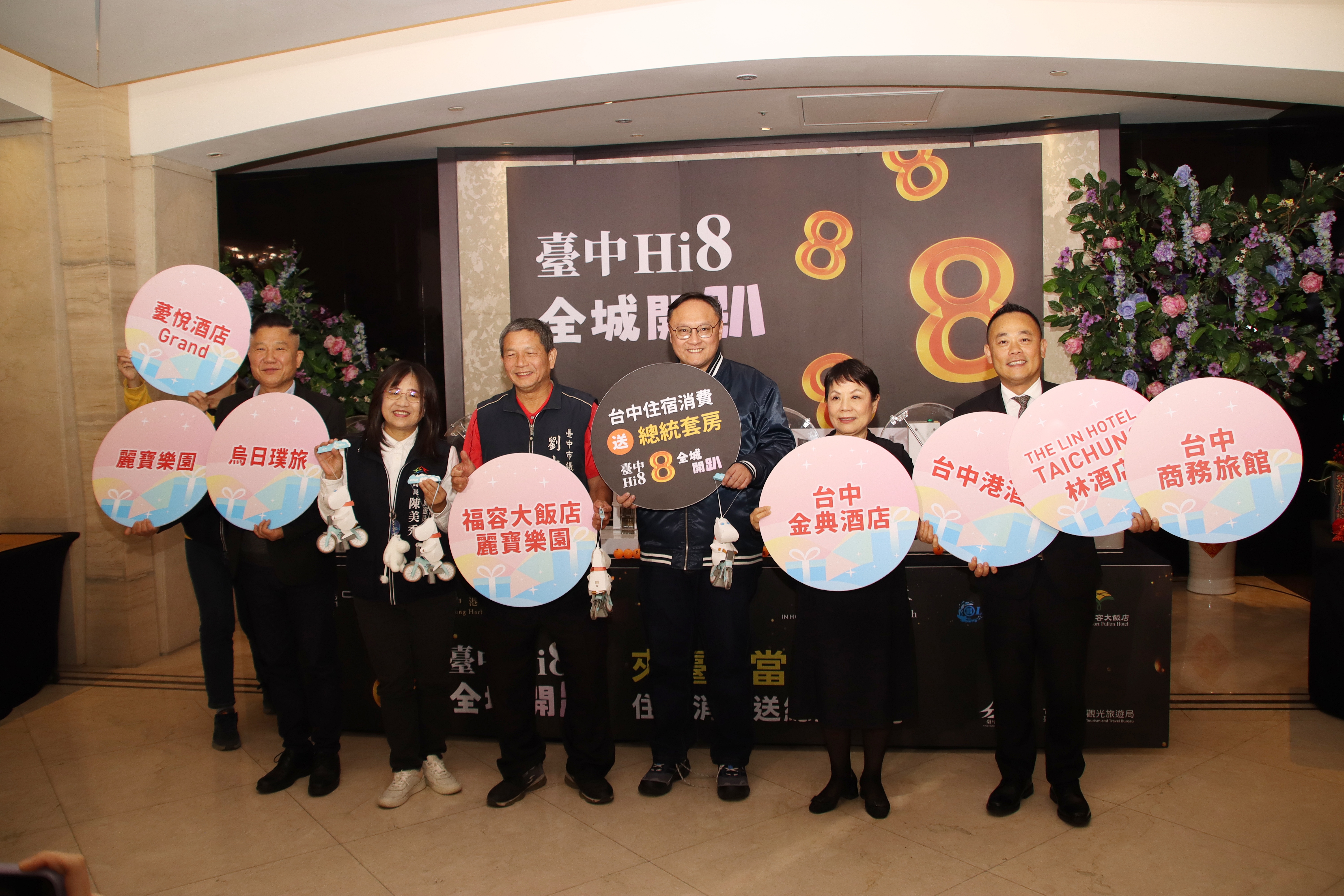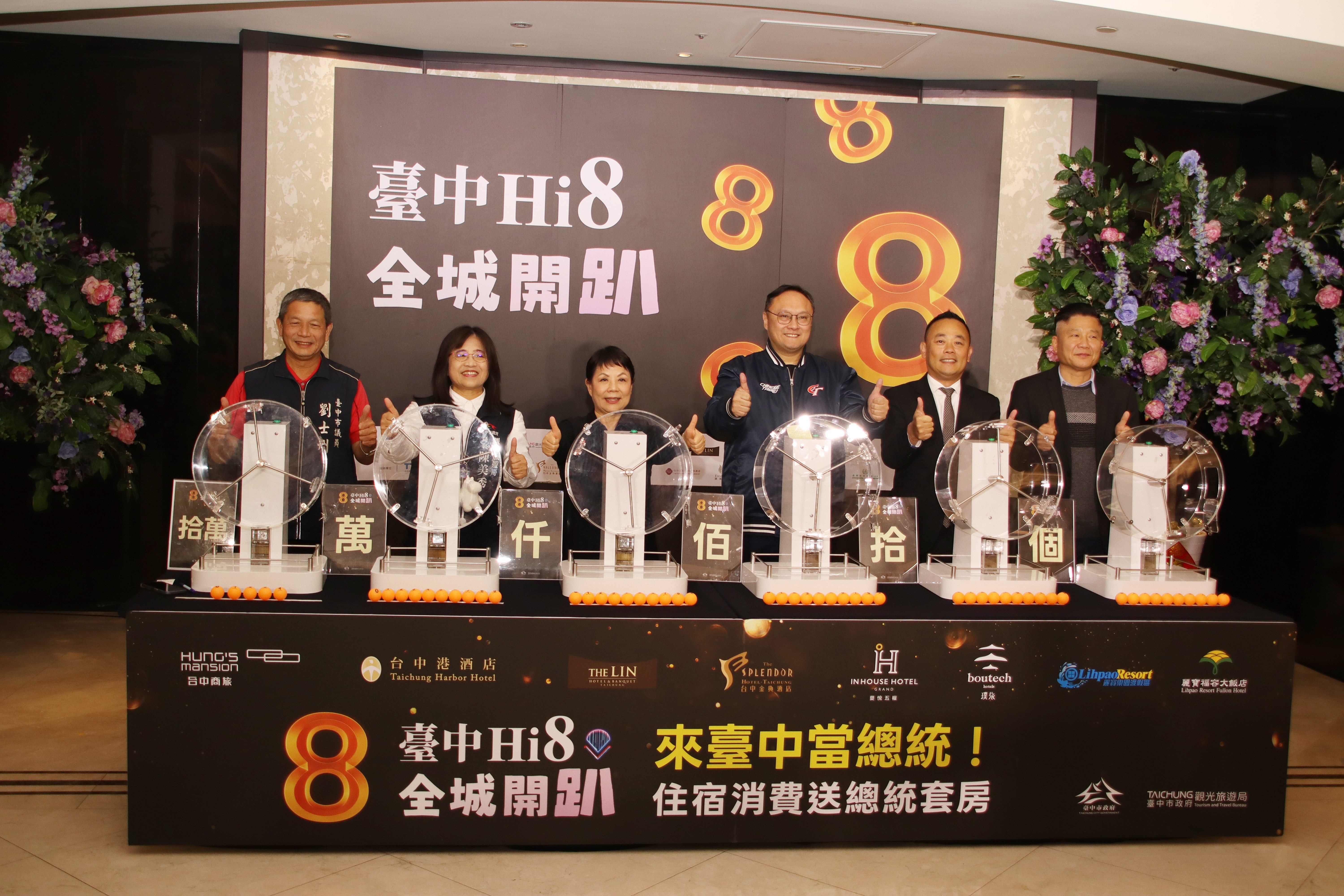 觀旅局補充,「台中Hi8 全城開趴」熱度持續,後續還有台中商旅天際套房及麗寶福容大飯店福容套房等兩間「類總統套房」抽獎,詳情請鎖定「大玩台中」臉書粉專。