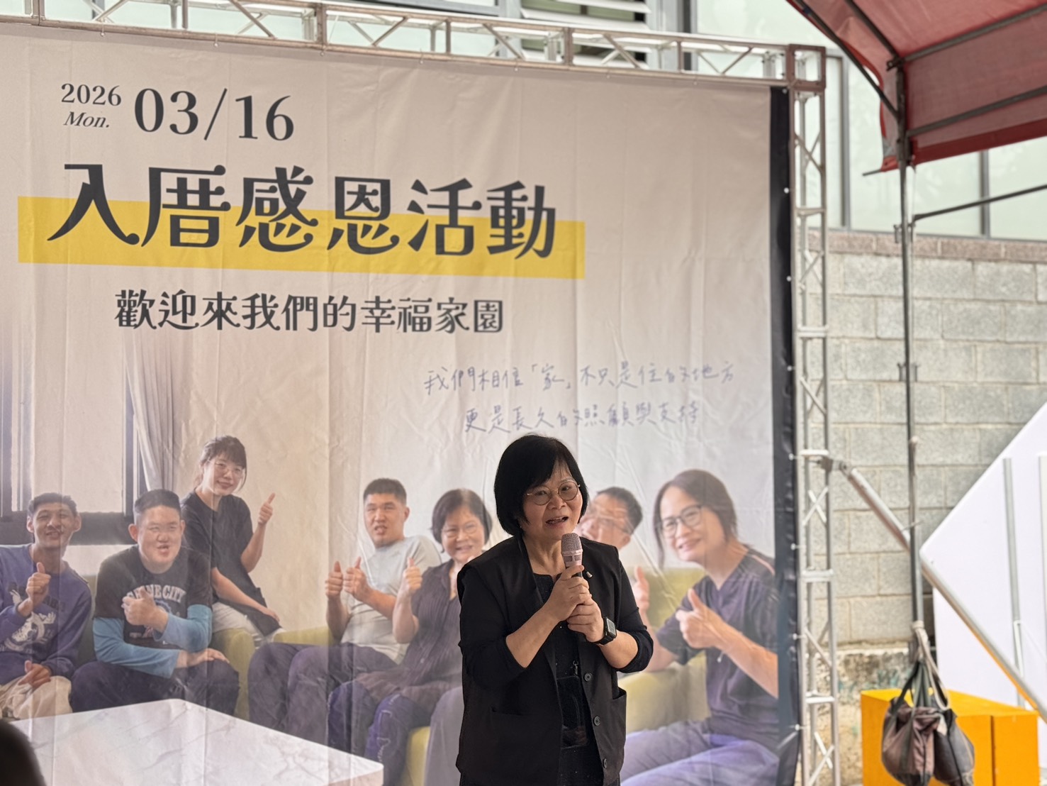 長期投入公益的藝人方馨今日也特別遠從台北到場,不僅是為 學員加油打氣,更是重要的陪伴與支持力量。方馨感性表示:「看見 學員在這裡找到屬於自己的生活空間與步調,逐漸成長的空間令人 感動。」她也呼籲社會大眾,除了硬體建設,更需要持續關注身障 者的支持需求,讓這份愛能細水長流。 幸福家園的成立,需來自政府政策支持、企業長期投入、社會 各界關懷。未來將持續秉持「尊重、自立、共融」的核心價值,讓 社區家園不只是一處住所,而是一個能陪伴身心障礙者走過人生不 同階段的依靠。