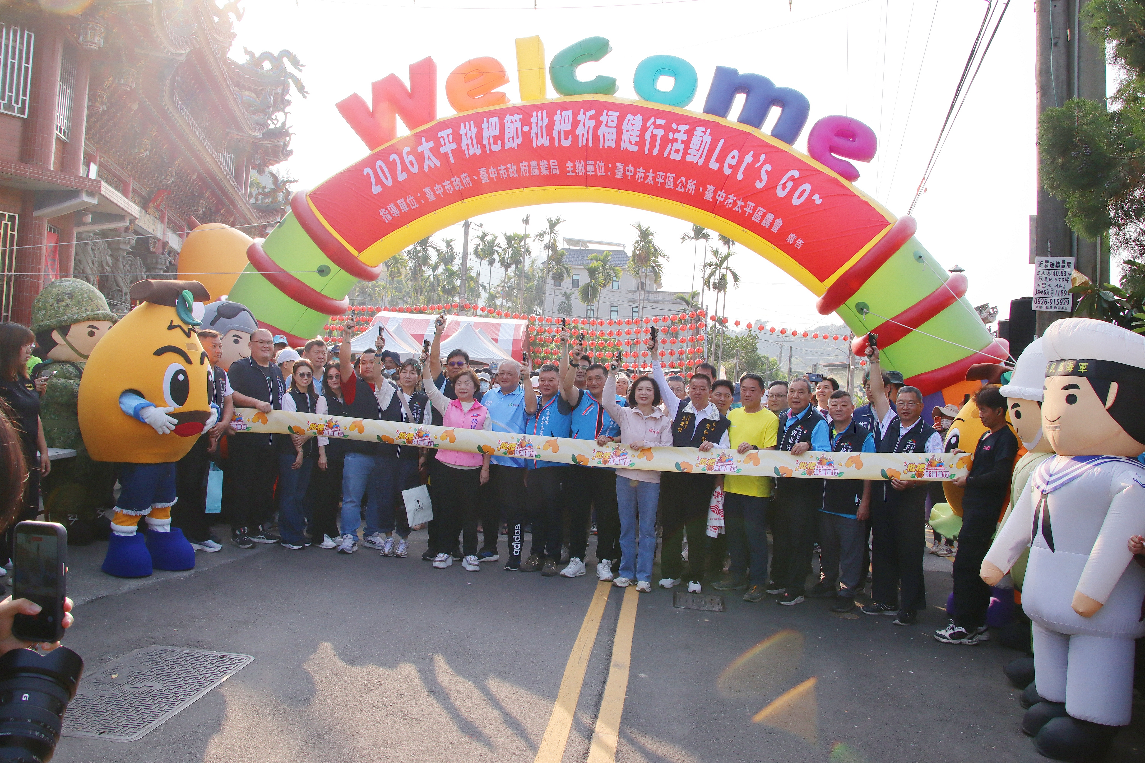 今(21)日於聖和宮舉辦「2026太平枇杷節」系列活動~「枇杷祈福健行」,區長陳柏宏感謝江啟臣立法委員、何欣純立法委員、楊瓊瓔立法委員、蔡耀頡議員、張玉嬿議員、黃佳恬議員服務處何茂揚特助、張玉嬿議員服務處許富凱主任、賴義鍠議員服務處劉永琦助理、江和樹議員服務處許書豪執行長、太平區農會黃文生理事長、太平區農會陳展群常務監事、太平區農會余文欽總幹事、臺中市政府農業局黃春滿主任秘書、沈芝貝技士、臺中市政府警察局太平分局副分局長賴信凱、調解委員許貴芳、調解委員劉金邦、市政顧問廖繼恭、市政顧問黃秋勇、市政顧問黃東守、民政顧問劉冠辰、民政顧問林錦輝、民政顧問陳美吟、民政顧問王萬杰、民政顧問劉南剛、民政顧問呂光連、太平區戶政事務所王琇昤主任、太平地政事務所余俊政主任、頭汴國小校長王素貞、頭汴國小家長會長董峻銘、聖和宮陸東明主任委員、聖和宮謝朝銓副主任委員、聖和宮陳興旺總幹事、樹孝商圈管理委員會劉家寧主任委員、光隆里張雅芳里長(兼里長聯誼會會長)、中山里閻泰利里長、中政里林宗慶里長、興隆里張閔南里長、建興里胡長志里長、光明里胥樹文里長、頭汴里江思涵里長、宜昌里林進發里長、宜佳里張麗眞里長、聖和里劉佳明里長、東汴里呂坤龍里長、新福里蔡美惠里長、國軍臺中總醫院廖丞晞主任、臺中市太平區觀光休閒協進會總幹事侯水河、太平後備軍人輔導中心副主任王志君、頭汴社區發展協會理事長曾富基、太平社區發展協會理事長陳中洲等貴賓蒞臨,也特別致謝聖和宮大力贊助活動精緻毛巾及精美摸彩品。本次活動規劃寓教於樂親子活動,讓活動更加圓滿精彩,未來將持續結合農業行銷與健康休閒活動,推動地方特色產業發展。邀請全國民眾把握枇杷產季,走訪太平,感受春日限定的甜蜜滋味。
