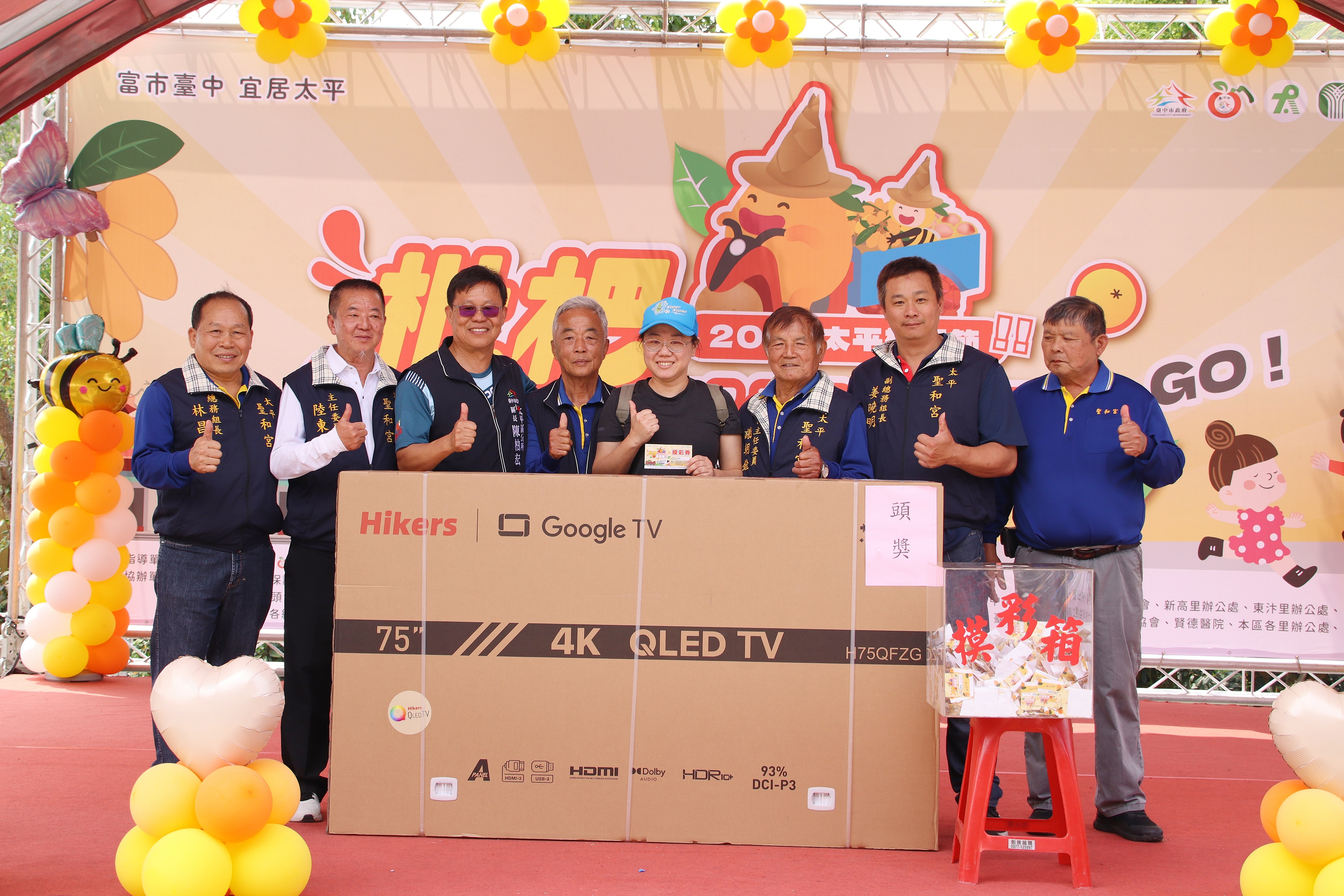 體驗好山麗水回到聖和宮會場後,緊接著精彩互動演出《頭汴國小鼓藝隊》、《魔術互動秀》、《臺灣夢舞蹈表演》、《晃管特技》贏得現場民眾滿堂彩,掌聲不斷!活動現場準備豐富參加禮及摸彩好禮,包括75吋電視、腳踏車及多項實用家電,為活動掀起高潮。參與民眾紛紛表示,能在春日好天氣中與家人一同健行、品嚐當季枇杷,又有精彩活動與好禮相送,收穫滿滿、相當開心,除了健行活動外,現場同步舉辦廉政、性別平等、調解業務等寓教於樂行政宣導送精緻小禮。還有「太平福氣市集」,集結在地小農與特色攤位,提供產地直送的新鮮枇杷及多樣農特產品,讓民眾邊逛邊買,支持在地農業。活動亦規劃「小小燈籠彩繪家」親子體驗,邀請孩童發揮創意彩繪燈籠,增添節慶氛圍;另設置「祈安祈福牆」,讓民眾寫下心願,為家人祈求平安順遂。