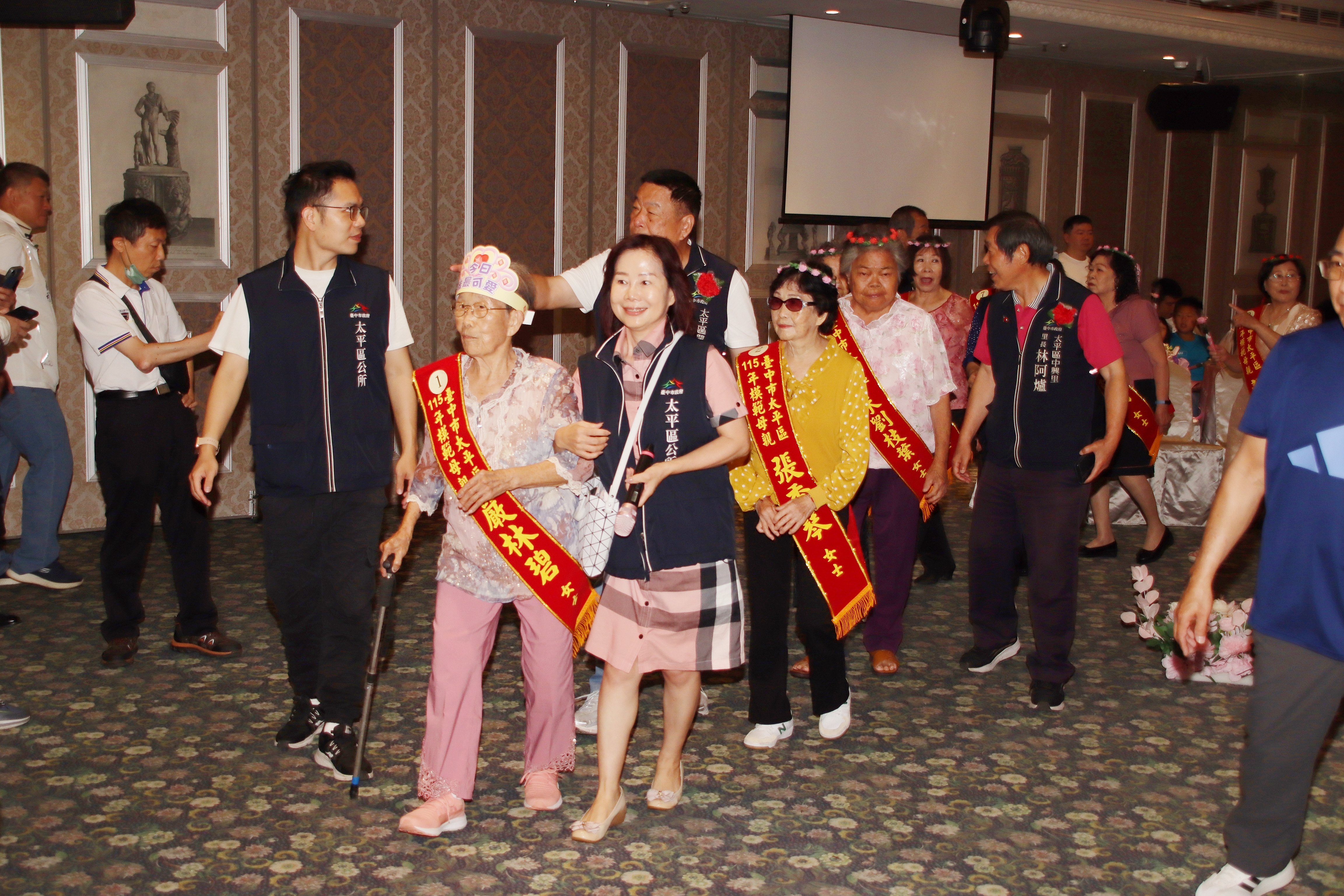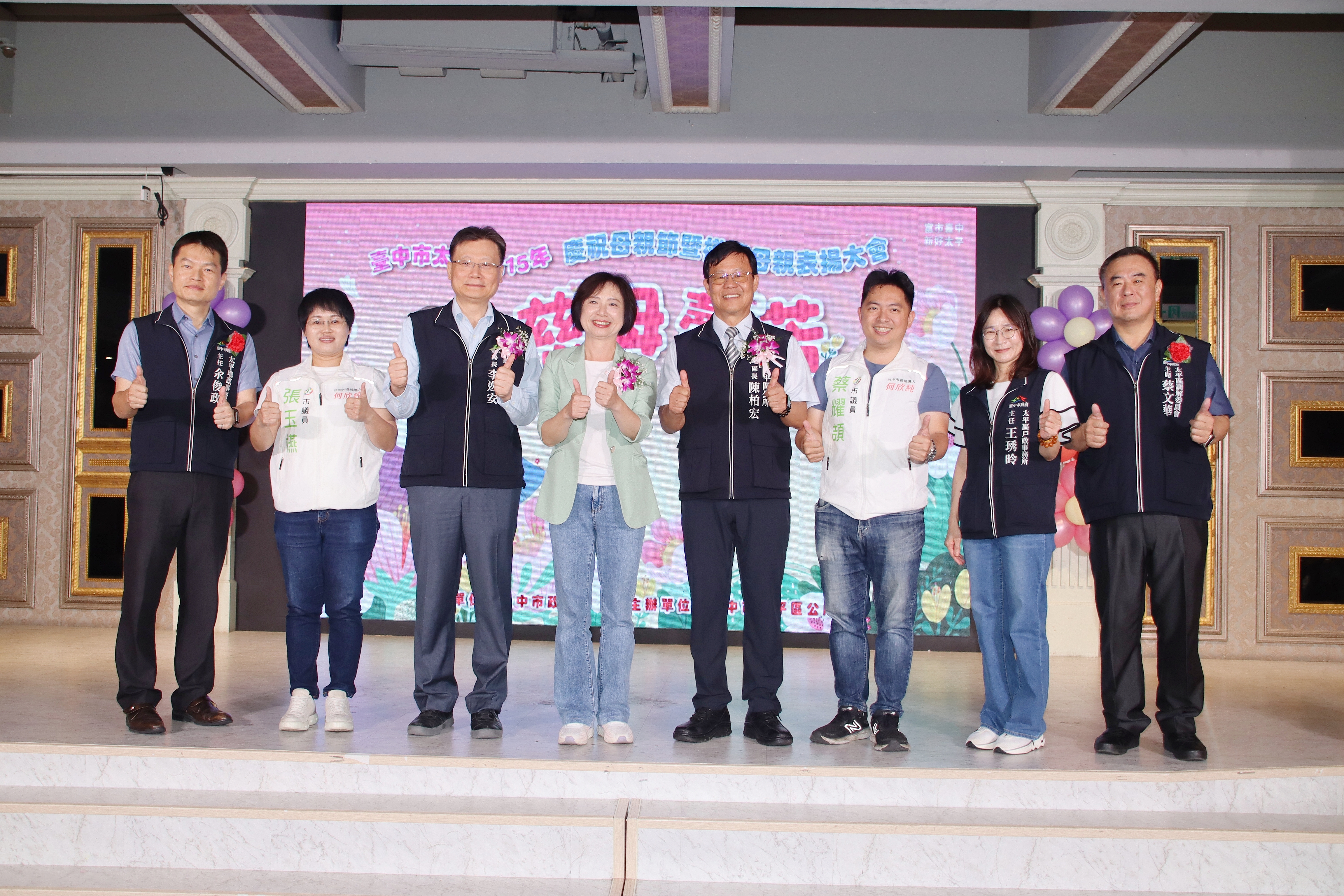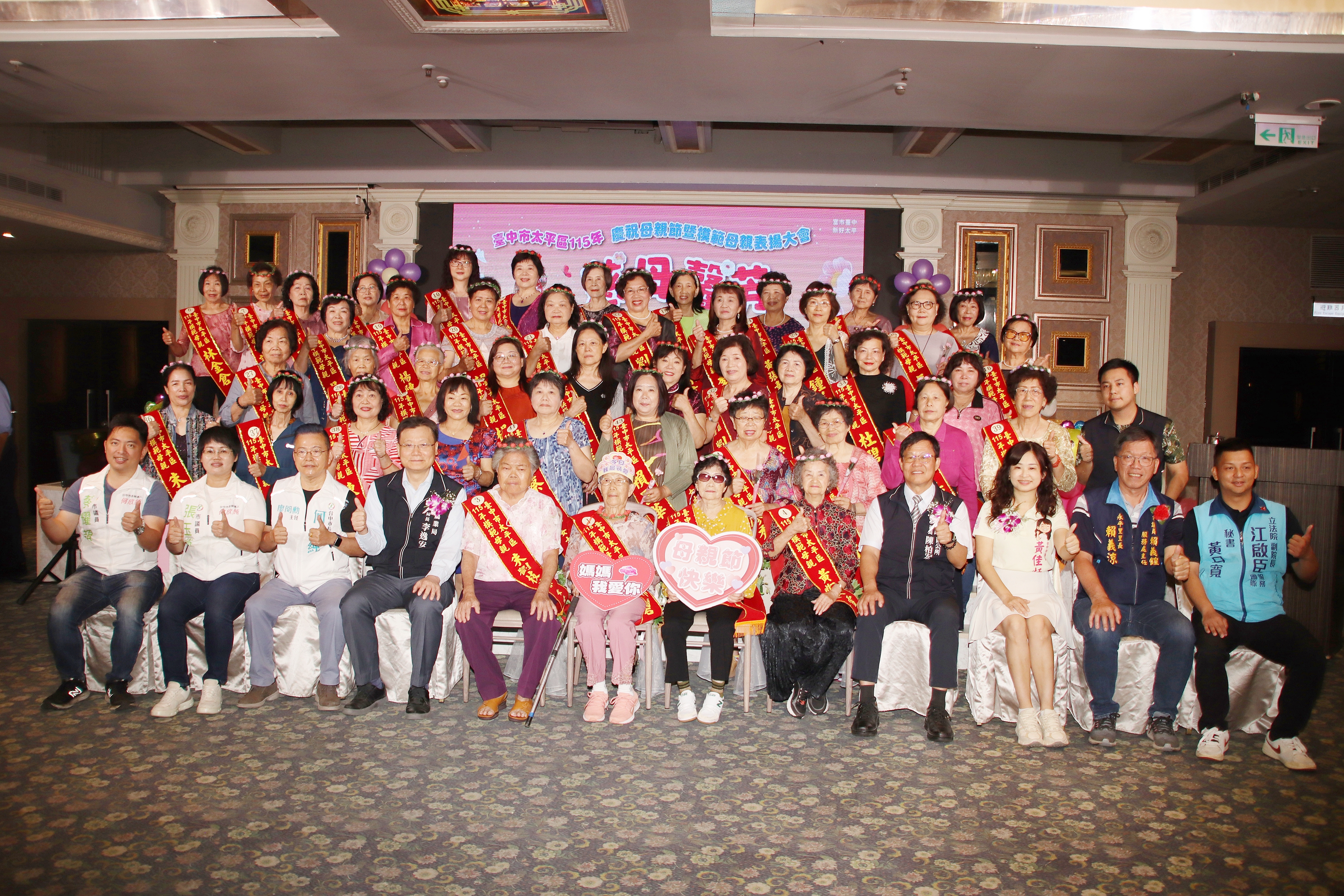 台中市太平區公所慶祝母親節特別在母親節前夕舉辦,慈母馨芳〜愛在太平活動,為感謝堅毅、無私奉獻的媽媽,太平區公所於今(115)年4月12日上午9時30分在新天地餐廳(東區店)設宴舉辦,邀請46位模範母親及家屬,齊聚一堂慶祝母親節。來自各里里長、立委及議員皆到場祝賀,氣氛溫馨熱鬧。